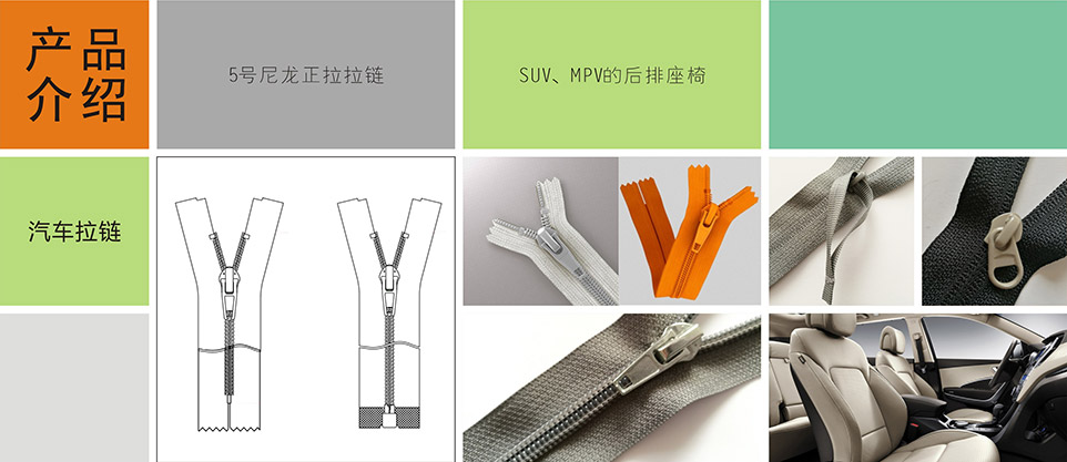 我們提供汽車專用拉鏈、標識扣、標識嘜、粘扣帶/刺毛帶,織帶/松緊帶,塑料扣件等其他汽車內飾、汽車座椅系統部件。